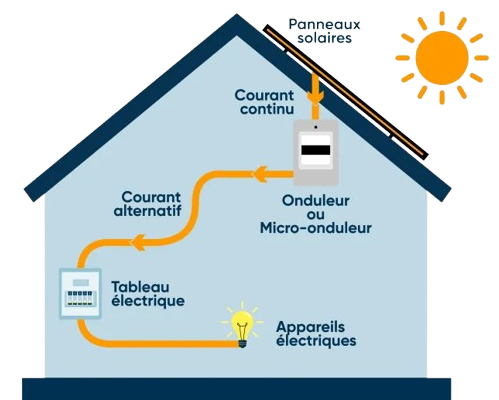 Distribution : L’électricité produite est acheminée vers votre tableau électrique pour alimenter votre maison.